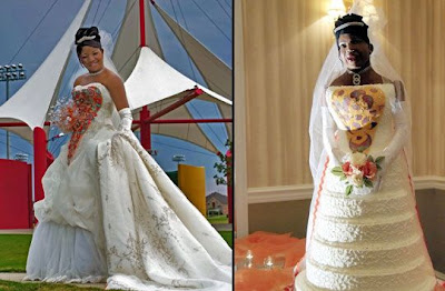 A bride in Allen, TX wanted her wedding cake to look just like.... ummmm... HER! Apparently the bride had a longtime fantasy of having a doll modeled after her... but I guess since that didn't happen she settled for a cake...